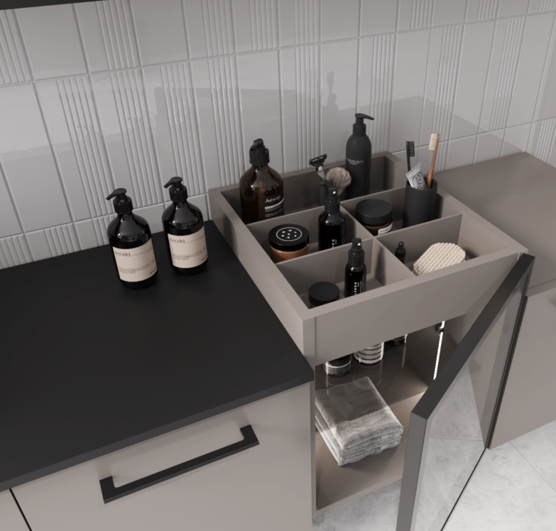 Pensez à désencombrer les rebords de lavabo, triez les produits de beauté, cachez les flacons peu esthétiques dans des paniers. L’objectif n’est pas de tout cacher, mais de donner une impression de simplicité, de légèreté, de bien-être.
