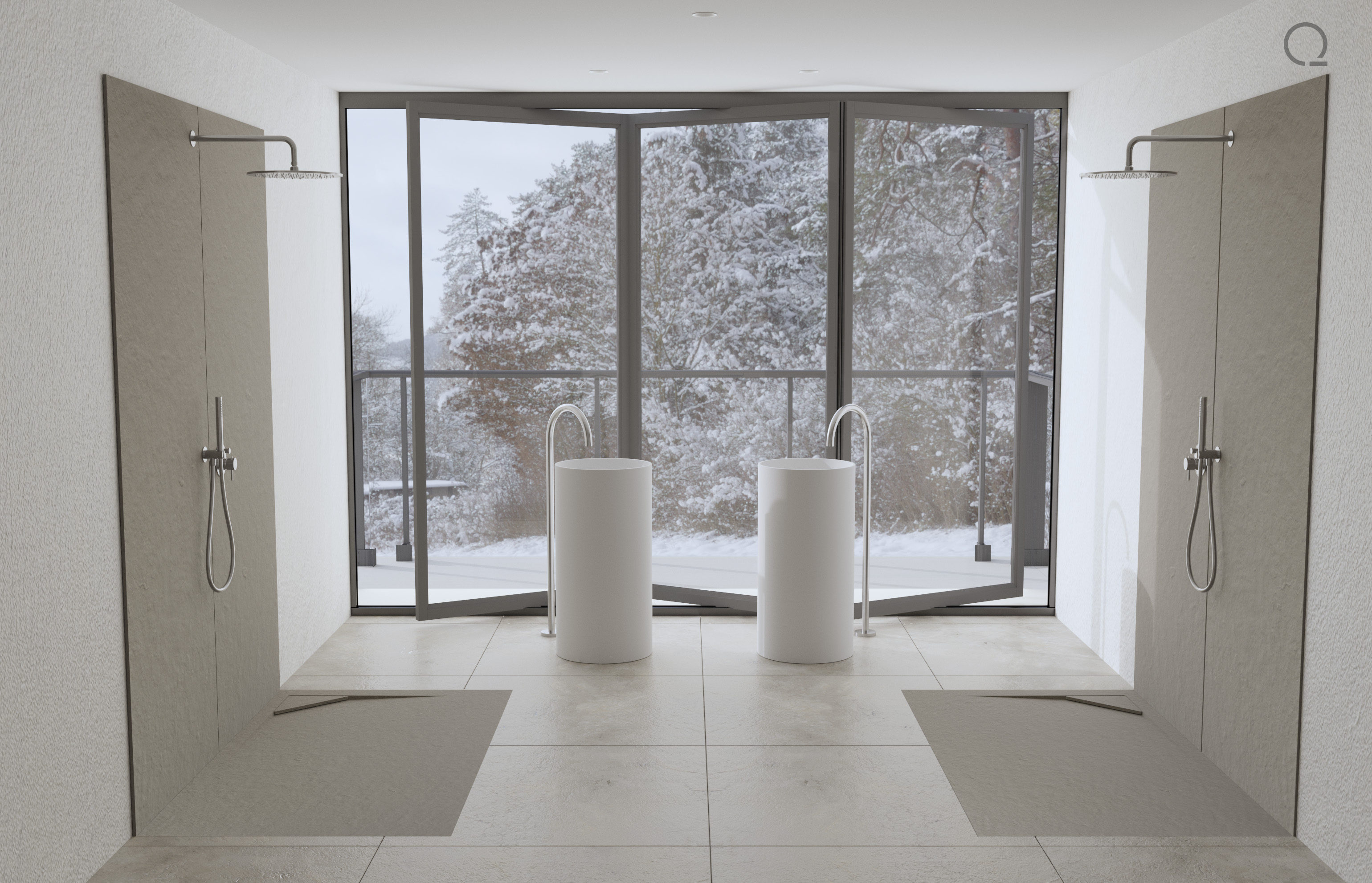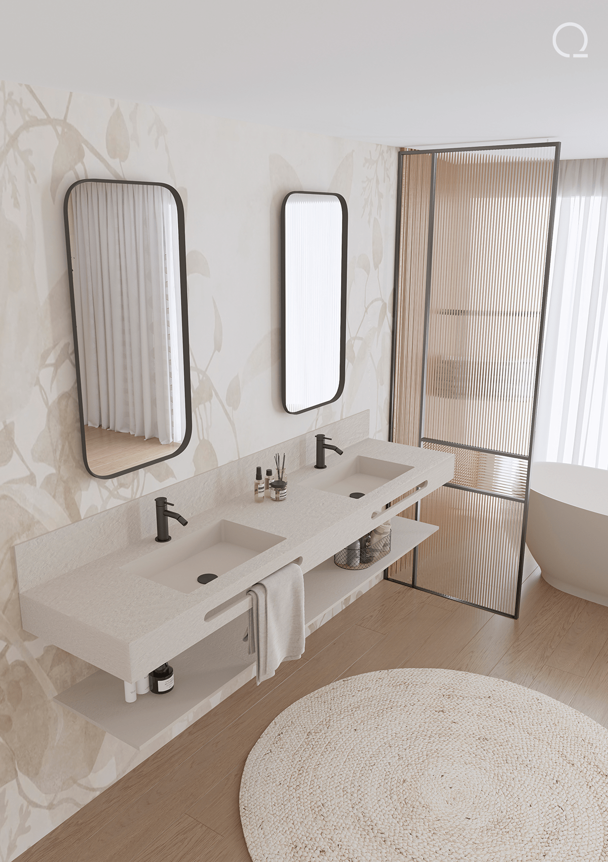 Plan céramique 120 cm, double vasque Double trou de robinet, avec trou de trop-plein