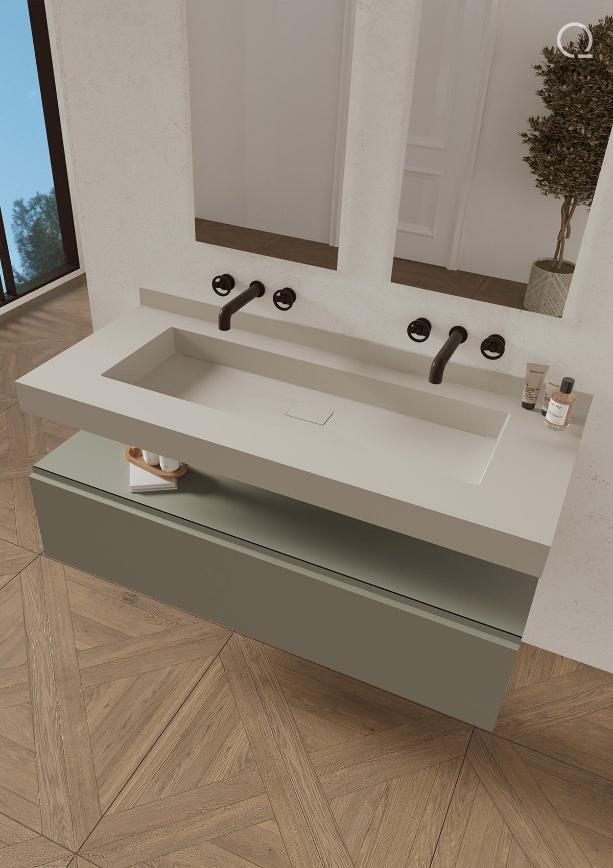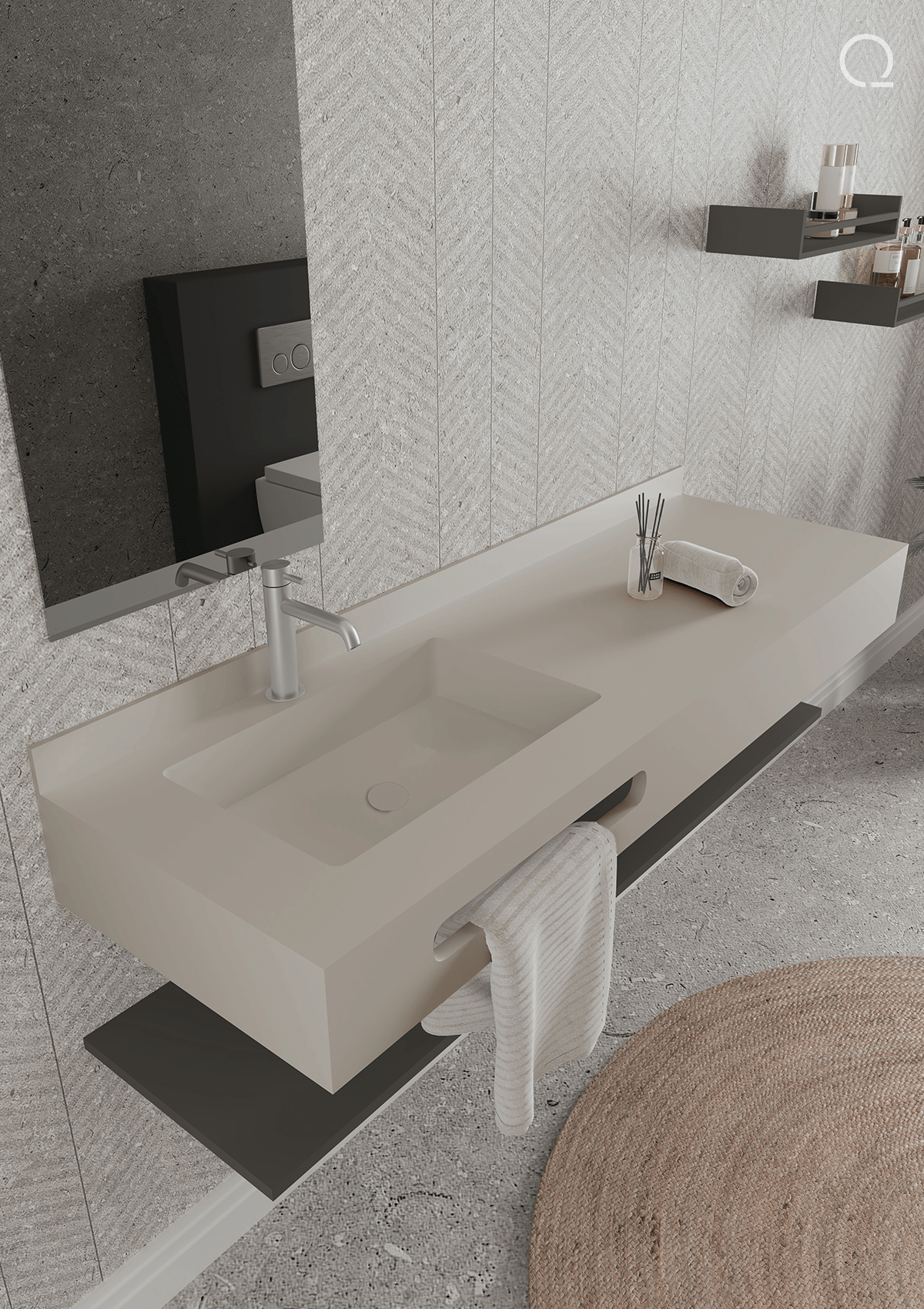 Metropole lavabo rectangulaire 120x47 cm , avec trou de robinet, sans trop-plein, rectifié, gris pierre mat